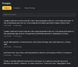Browse prompt history, enhance with AI, and craft cinematic video descriptions from simple ideas.